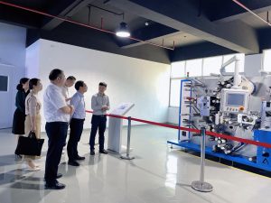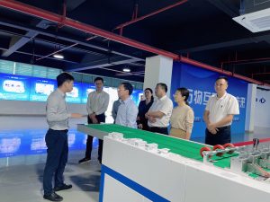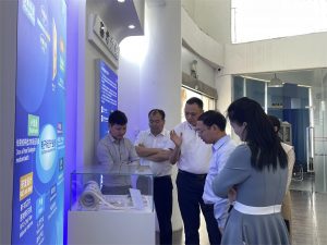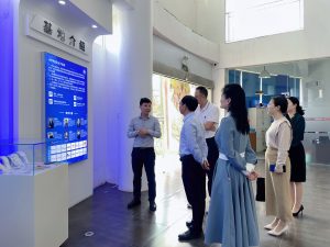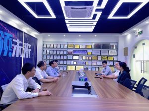 首先我們帶領導們參觀我們的展廳,詳細地向領導們介紹公司的核心產品、技術實力、產品應用等方面的情況,展示了我們的市場前景和行業地位。