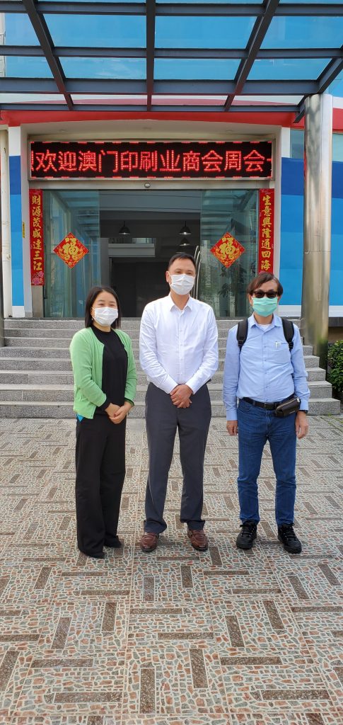 (圖片說明:左邊的女士是我司董事長文華女士和總經理曾志華先生,右邊中間是澳門印刷商會周會長)