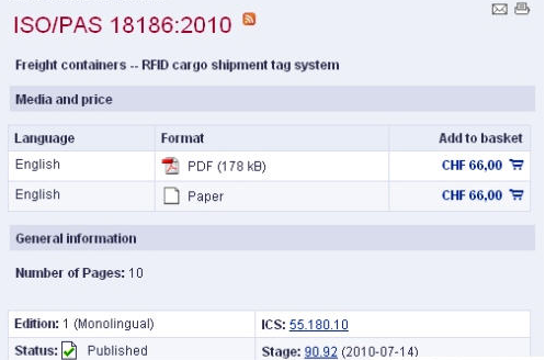 2010年7月,國際標準化組織(ISO)正式發布了《ISO/PAS 18186:集裝箱-RFID貨運標簽系統》。