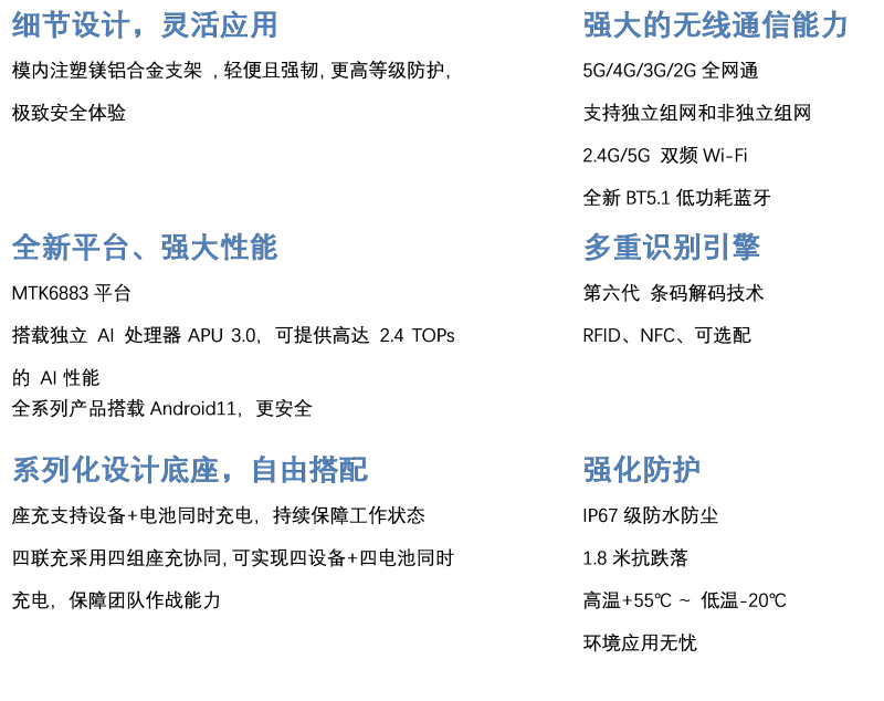 | NFC | 支持協(xié)議:ISO14443A/B,ISO15693,讀取距離:0~5cm |